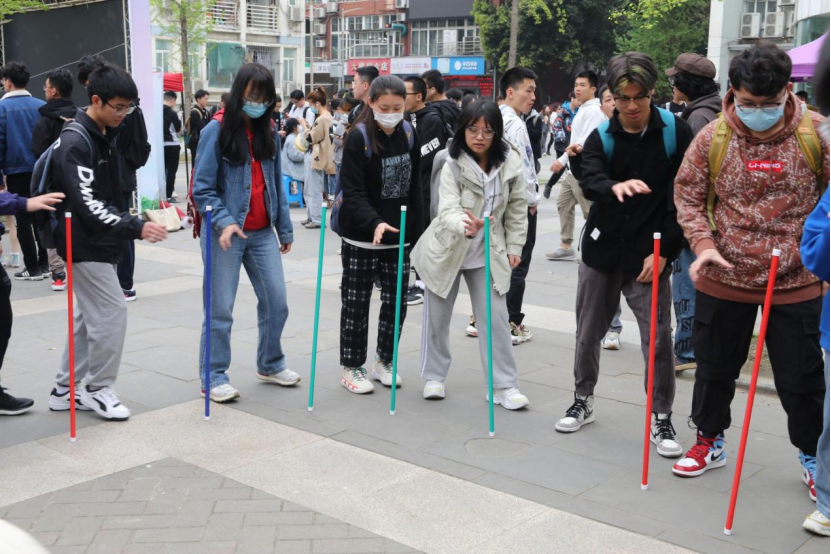 学生会和建筑学院学生会承办,以心理健康知识游园会的形式开展,包含四个环节,分别为心理健康知识答题、解压游戏、绘画作品展示以及现场自由作画。活动伊始,同学们进行现场扫码答题并抽取礼物,答对规定题数方可进入游戏环节。游戏分为三个环节,分别为不倒翁、绘制生涯彩虹图以及套圈赢好礼。在不倒翁环节中,同学们要保证手中的棍子在人移动后也不能倒地,在游戏过程中,参与的同学们都洋溢着微笑,这个游戏也有利于增强同学们的合作意识,拉近同学们之间的距离,完成之后可获得一枚印章。绘制生涯彩虹图时,同学们根据自身的情况用彩铅绘制出属于自己的独一无二的彩虹图,这个游戏让同学们通过简单的绘画发现自己、认识自己,完整绘制后便可以获得第二枚印章。在集齐前两枚印章之后则可进入套圈赢好礼环节,套中则可带走,瓜子影视