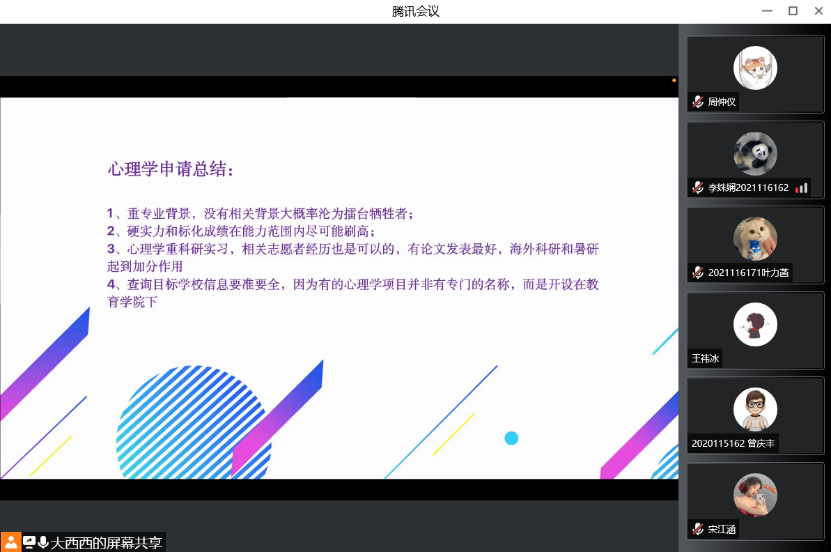 为进一步提升学生的国际化水平,增强学生对海外学习交流的机会和渠道的了解,瓜子影视 于2022年3月31日邀请新东方留学讲师王利莎为全体本科生分享心理学专业出国留学的相关情况。此次讲座在线上召开,应用心理学专业的学子积极参与。