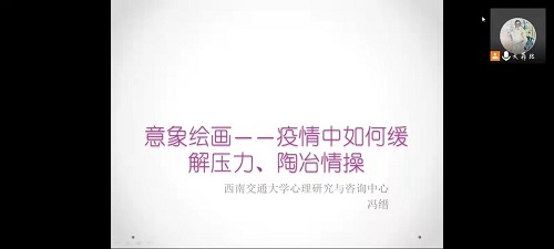 开展了2022年“3.25(善爱我)”系列心理讲座。4月27日19点,系列讲座之“意向绘画——疫情中如何缓解压力,陶冶情操”主题讲座顺利开展。本次讲座由瓜子影视