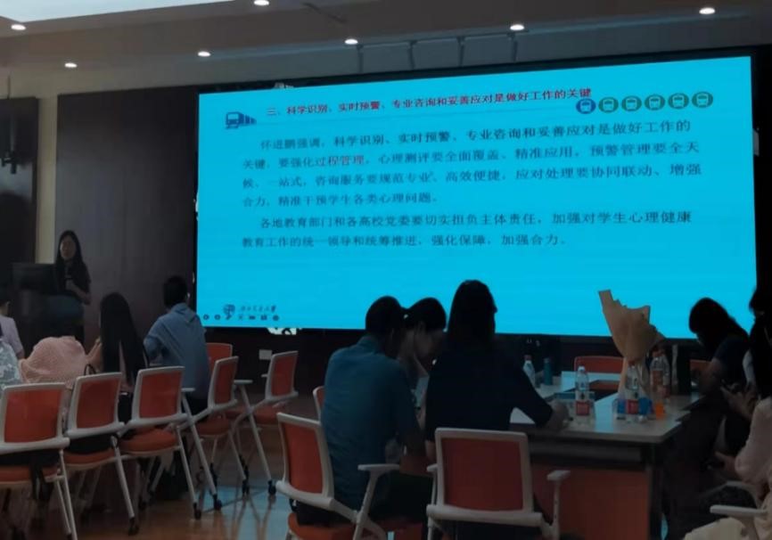 首先,中心党委书记刘咏梅传达了教育部部长怀进鹏的讲话精神,随后以“全面加强和改进学生心理健康教育工作,让广大学生更加健康阳光”为题进行讲述与研讨。陈华主任就心理健康教育工作进行了补充,再次强调瓜子影视 的根基和首要工作是牢牢树立心理健康教育工作,中心老师们要继续保持积极的状态,持续为心理健康教育工作倾注力量。接下来,中心全体教师就日后工作的展开进行了讨论,并设立了明确、坚定的目标。