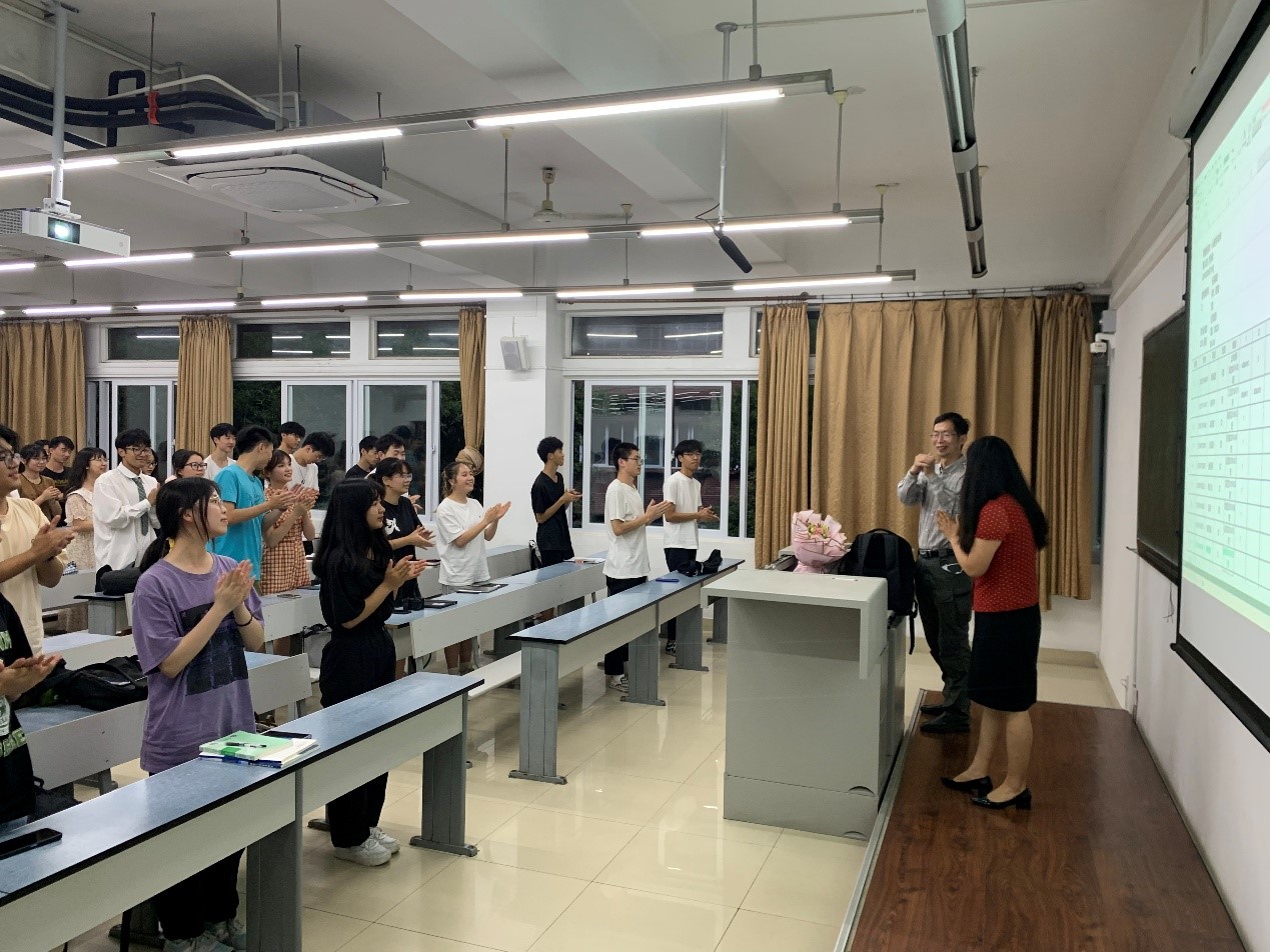 据悉,这是瓜子影视 费维宝老师在荣休前的最后一堂课。学生们为表达对老师的感恩与不舍之情,悄悄准备了一捧鲜花,在上课前献给了费老师。中心党委书记刘咏梅老师代表中心感谢费老师二十载的辛勤付出,并提议在场的所有同学全体起立,向费老师鞠躬致谢。之后,费维宝老师也在发表了自己从教20年的感言。中心陈华主任、柯小君副书记、雷鸣副主任、杨劼老师参加费老师的“最后一课”。