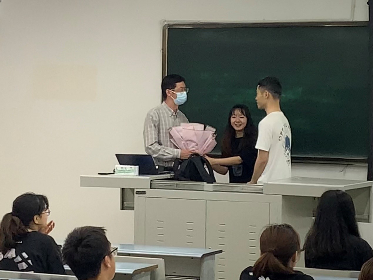 “感谢您为交大做出的奉献,我们代表同学们感谢您!”在犀浦校区教室里,一场温暖的送别活动正在进行。两位学生正在向讲台上的费维宝老师敬献鲜花。