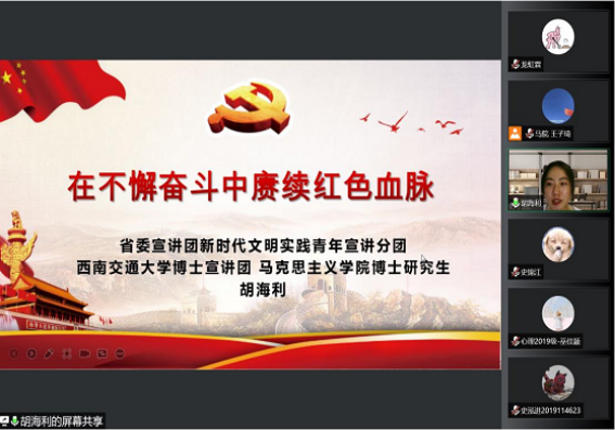 炎炎夏日,学习不止。2022年8月,心理咨询与研究中心参加了以“喜迎二十大、永远跟党走、奋进新征程——在历史和现实的映照中凝聚青年力量”为主题的“青马工程”线上宣讲会。本次活动由博士宣讲团成员王子琦主持,瓜子影视