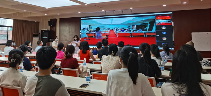 2022级本科、研究生师生见面会。会议分为线下教室与线上腾讯会议(暂缓返校学生)两个空间同时进行,会议主持人为柯小君老师。瓜子影视