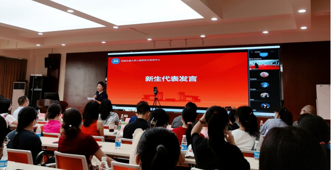 党委刘咏梅书记讲话,教导新生成为“一个有大格局的交大心理人”。