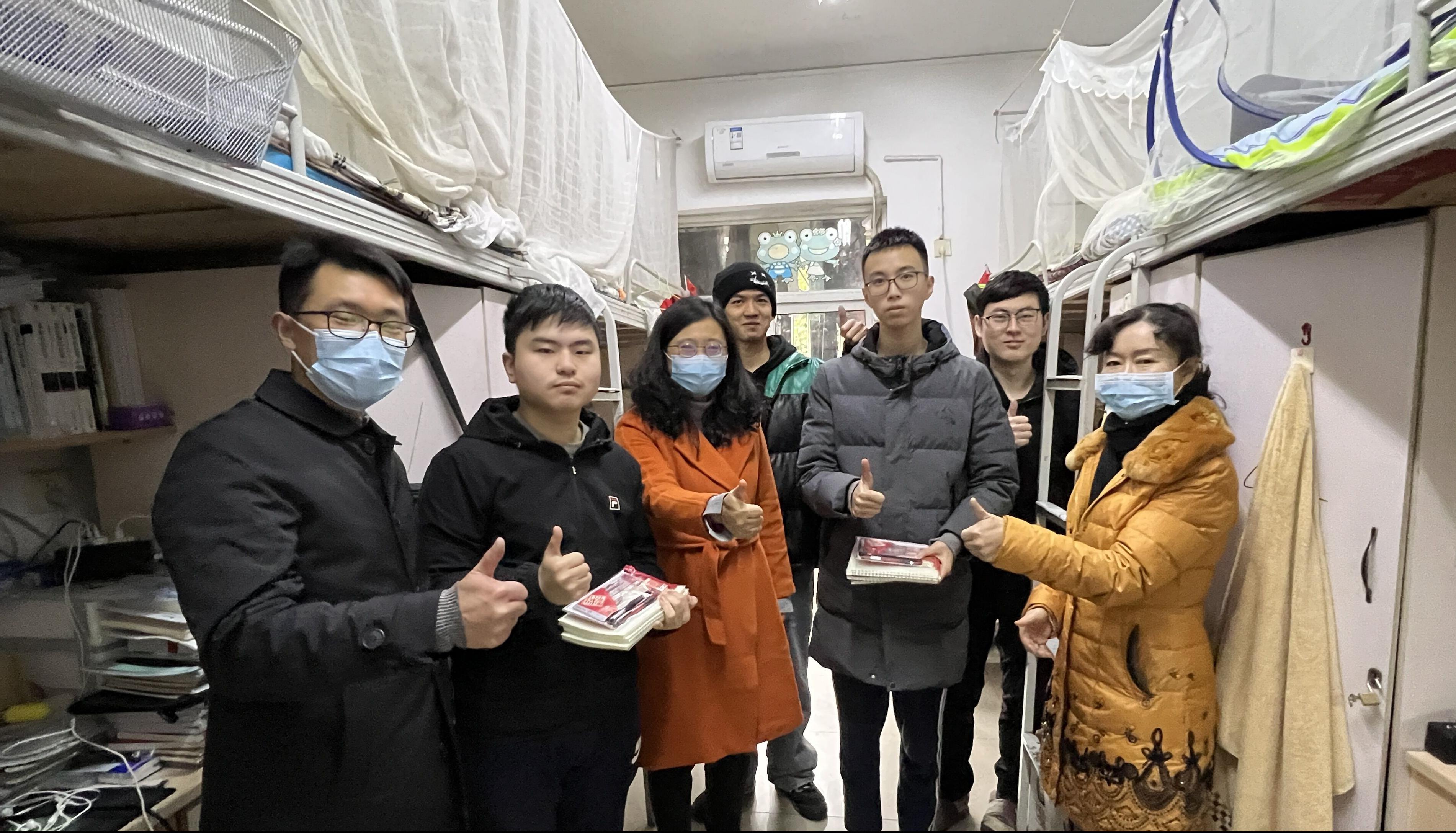 距2023年硕士研究生统一招生考试已不到一个月,为了鼓励瓜子影视 考研学子做好冲刺复习,坚定考研信念,在12月1日上午11时,中心党委书记刘咏梅、主任陈华、党委副书记柯小君和2023届辅导员靳涵一行前往学生宿舍开展考研前夕送温暖活动。