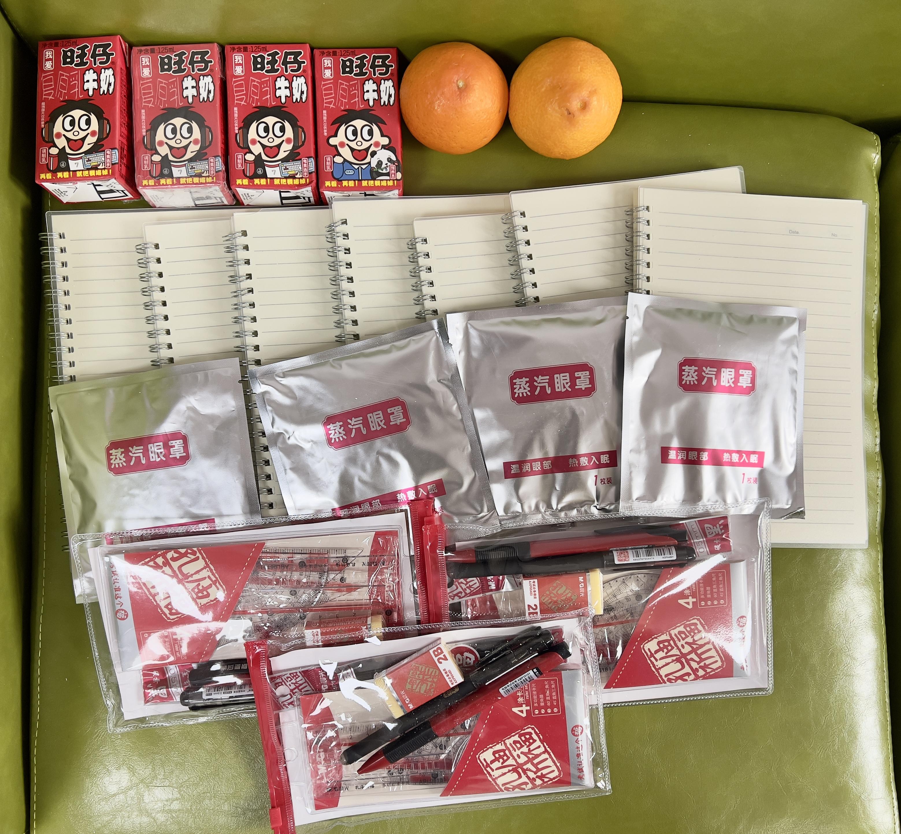 随后,中心领导为同学们送上了带着满满祝福与期望的温暖礼包,有寓意考研“橙”功的橙子、考研“旺旺”的牛奶、“孔庙祈福”系列文具套装等等。同学们收到礼包后非常高兴,纷纷表示备受鼓舞,会继续加油,奋力拼搏,争取获得理想成绩。