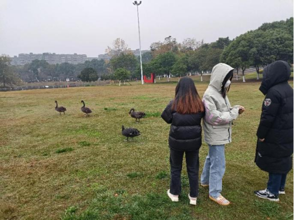 志愿者们在活动中也会提醒游人文明观赏,和天鹅保持安全距离,杜绝投喂。并且志愿者们还主动清理周围垃圾,让“校宠”天鹅的生活环境更加干净整洁。志愿者们看到自由嬉闹的天鹅,都感受到了人与自然和谐相处之美。