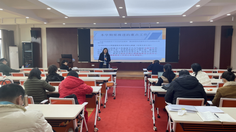 陈主任指出,开学季主题教育活动是作为今年上半年的重点工作之一,中心要全覆盖、立体化开展系列宣传教育引导活动,充分利用学校各级各类网络媒体平台,加强思想引领、心理支持,凝聚共识、坚定信心;同时,要强化心理教育和指导,围绕情绪调节、压力管理、和谐人际关系、生命意义与自我成长等主题,开展心理讲座、心理沙龙、素质拓展、团体辅导等活动;依托中心实验室开展心理体验、心理调适、心理潜能激发等活动;依托“3.25”(善爱我)、“5.25”(我爱我)校园心理文化节,多形式、多渠道开展心理健康教育活动。最后,陈主任强调,要把助力学生健康成长成才放在第一位,中心各内设机构和学生心理社团要形成具体的工作方案并尽快启动和实施,把学生心理健康教育工作做实做细。