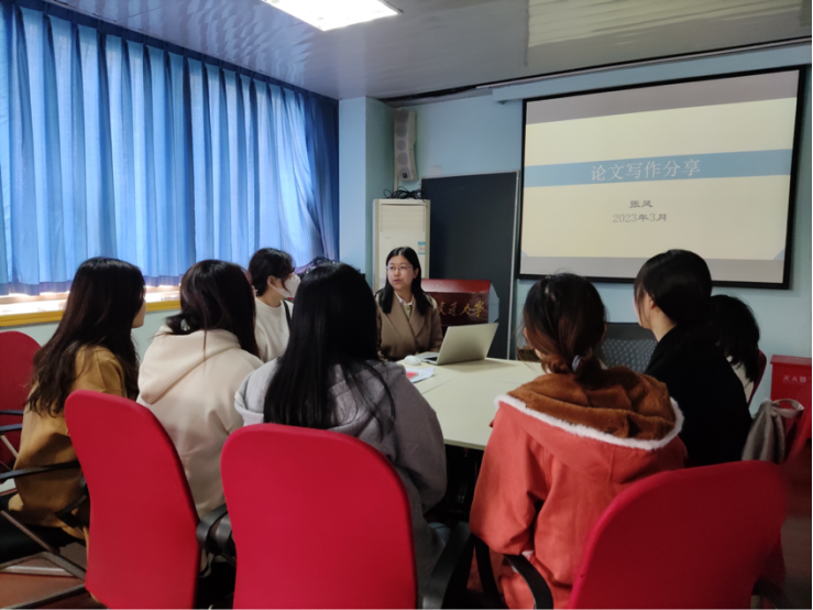 的“3.25”(善爱我)、“5.25”(我爱我)校园心理文化节,宣传心理健康教育,在学习和生活中成为朋辈榜样。随后,张凤老师为同学们分享了论文写作心得。张老师与同学们积极互动沟通,并详细分享了文献积累方法和一些写作经验。张老师认为科研是一个厚积薄发的过程,只有坚持学习、掌握前沿,才能有所收获。