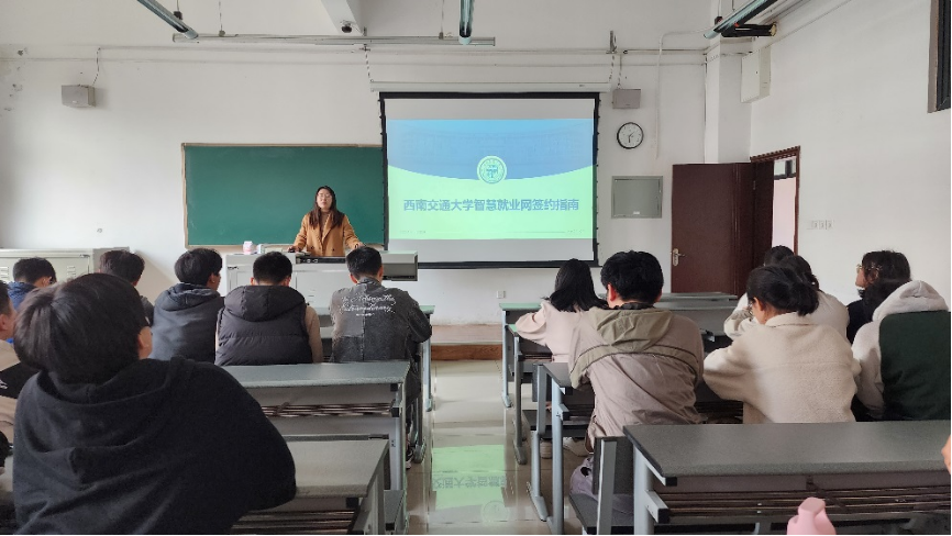 接着,辅导员靳涵针对目前同学们在就业签约中存在的疑问进行解答。提醒同学们在选择岗位的时候尽量以学校为平台,确保安全性和可靠性。如果是自行寻找的企业,一定要擦亮眼睛,提高辨别能力,遇到不确定、有疑问的一定要询问辅导员,切记不要盲目签字。在签约的时候尽量使用学校的网上签约。