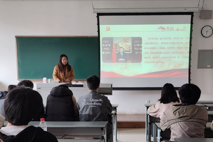 最后,辅导员靳涵鼓励同学们抓住时代机遇努力拼搏。青年兴则国家兴,青年强则国家强。青年人是民族的希望、国家的未来。身处繁华盛世,恰逢最美青春,青年人应踔厉奋发、勇毅前行,争做堪当民族复兴重任的时代新人,让青春在为祖国、为民族、为人民、为人类的不懈奋斗中绽放绚丽之花。