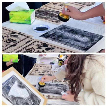 在九里校区现场,不少同学参与拓片活动。蒋洪波老师在引导同学们拓片的同时,细心地讲解这个活动对疏缓心态的作用。既训练了同学们拓片的技能,调整了气息,疏缓了情绪,又让同学们在拓印的过程中将“正心修身”“正心明道”“精勤求学”“敦笃励志”“果毅力行”“忠恕任事”“知止不殆”等词铭记于心。