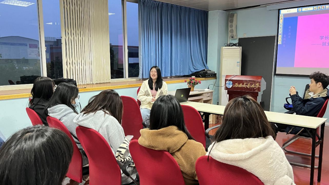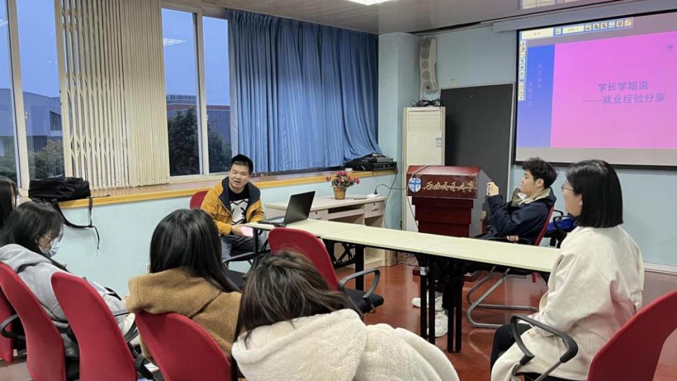 会上,张老师就目前2021级研究生最为关注的就业问题提出了自己的建议并邀请研三已签工作的王宇拓、赵海琳、毛远程、张圆圆学长学姐分享了自己的经验和教训。本次班会通过同辈对话形式,与互助主题牢牢契合。