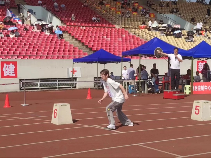 的李姝娴同学和杨昕同学奋力拼搏,用尽自己的力量投出最好的一球。杨昕同学取得了女子铅球第一名的好成绩。