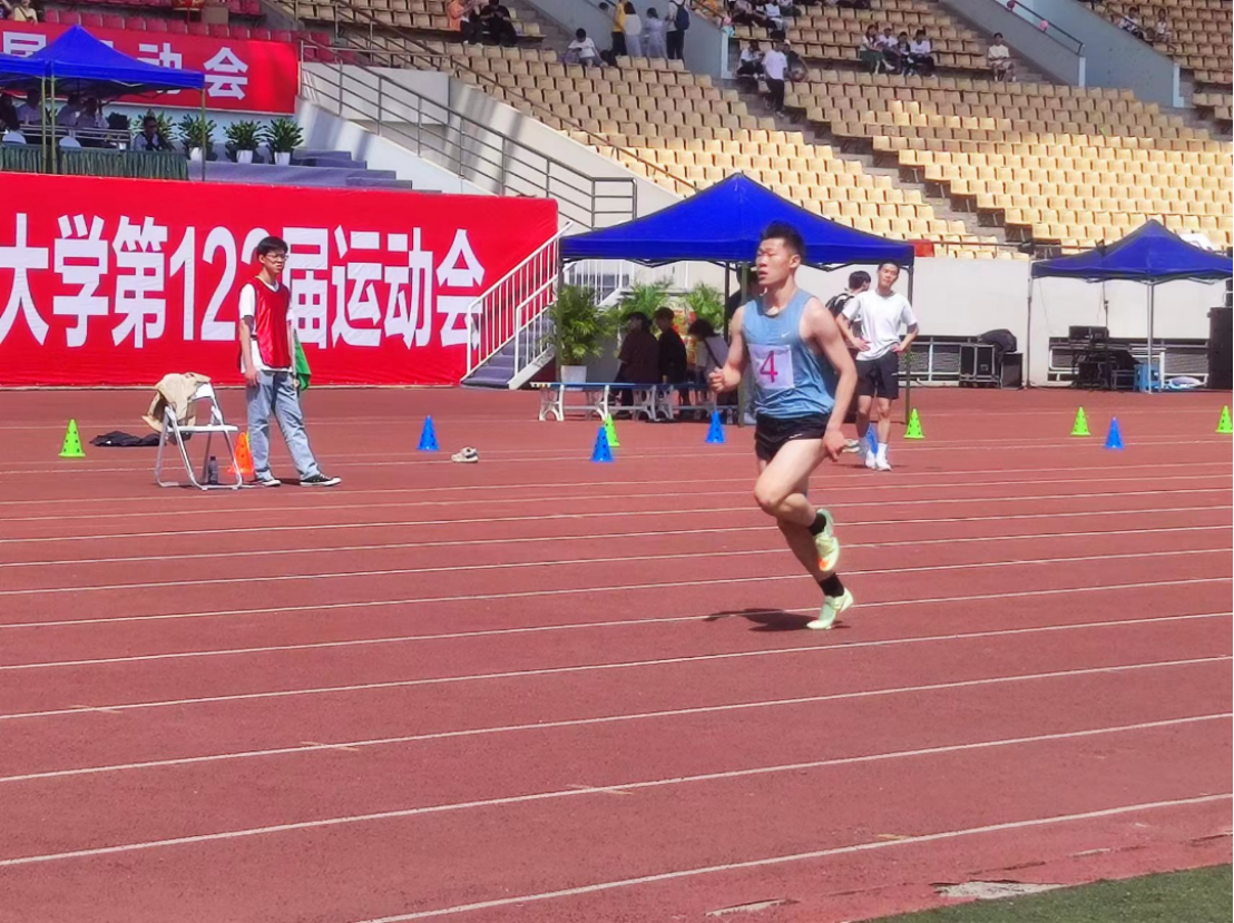 4月15日上午11点10分在北区田径场举行的乙组男子400米决赛中,中心的张凯旋同学取得第二名的好成绩。百米赛跑,迎风追赶。耳边是胜利的鼓声,心间是澎湃的热血。