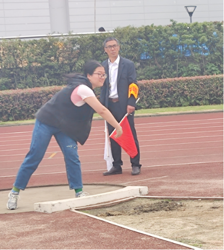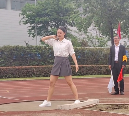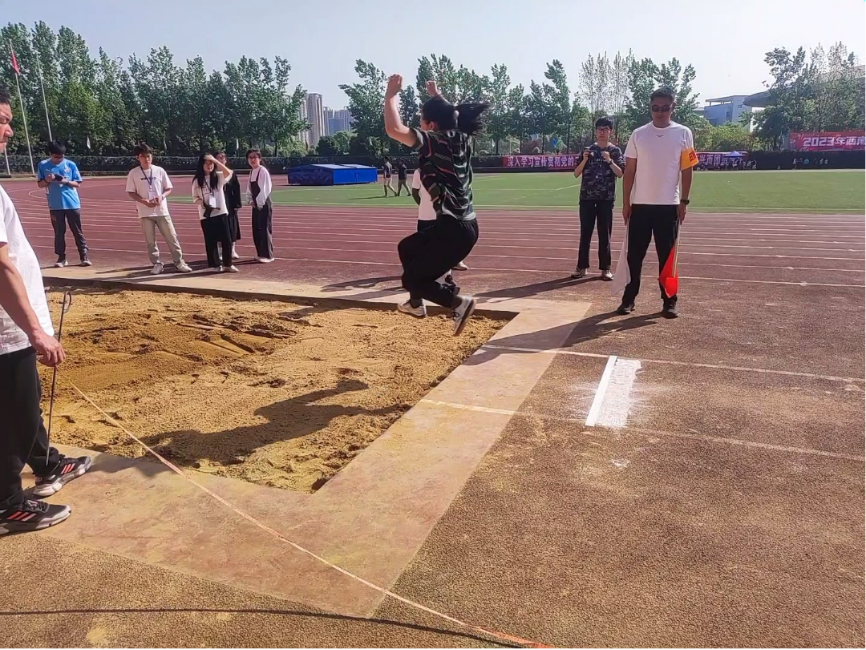 4月15日上午9点在北区田径场举行的女子跳远比赛中,中心的张守宇同学取得第二名的好成绩。耳边是胜利的鼓声,心间是澎湃的热血。