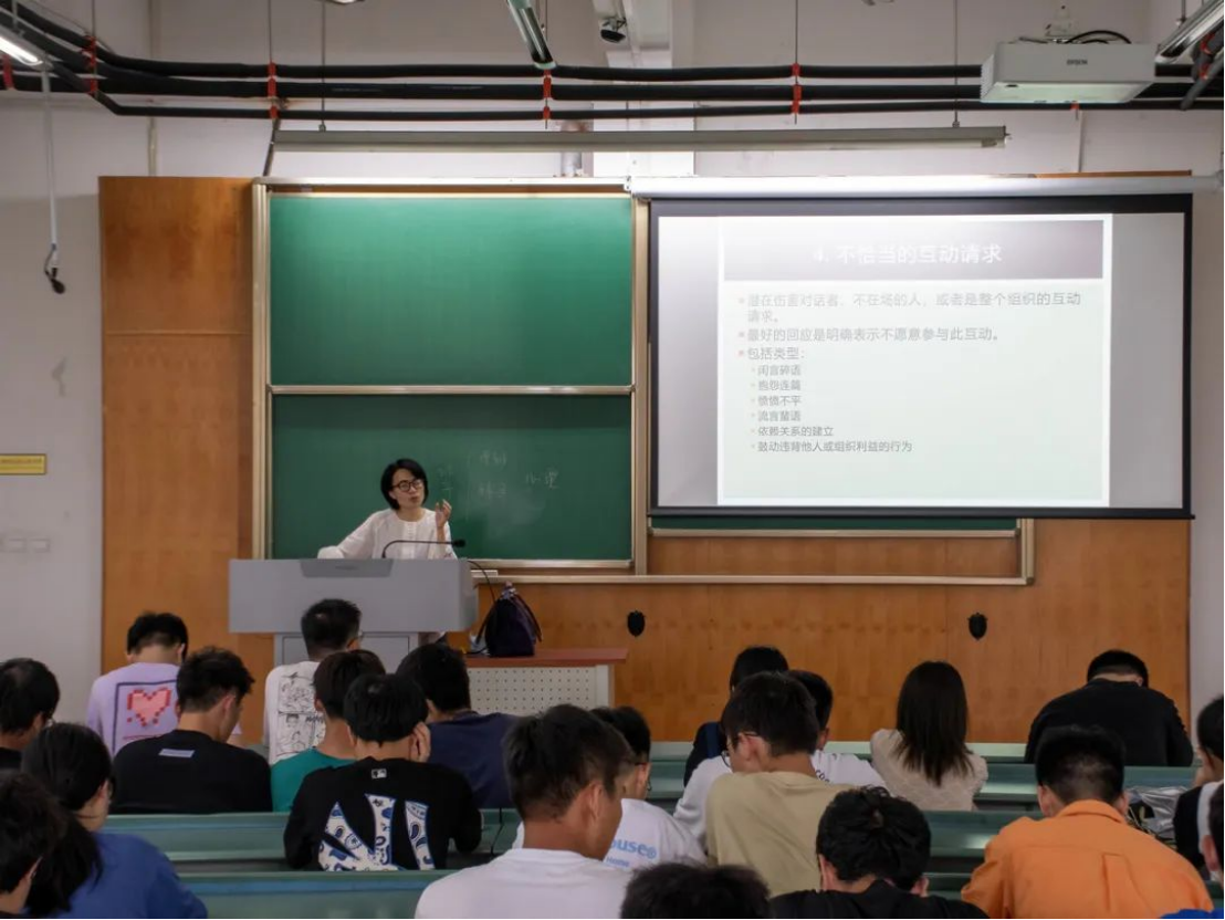 讲座伊始,冉俐雯老师向同学们简单阐述了“朋辈”二字的意义:倾听、理解和辅导。在座同学多是心理委员或班委最应做到的是真诚地倾听、正确识别与应对。冉俐雯老师指出如何理解“朋辈”二字是心理委员培训中极其重要的一环,而心理委员的工作中重要的一环则是倾听。