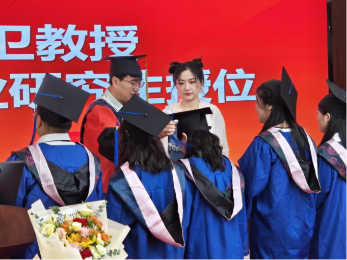 接下来,陈华教授和宁维卫教授分别为2023届毕业生颁发学位证书、扶正流苏并合影留念。