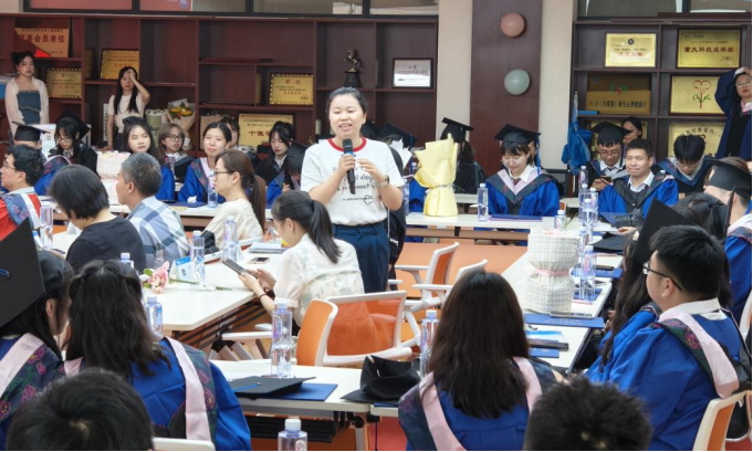 之后,本科生代表黄奕莛、研究生代表唐燊和牟韵静分别发言,感慨校园生活的美好,感谢中心老师们的辛勤付出,美好的校园时光将永远珍藏在心中。