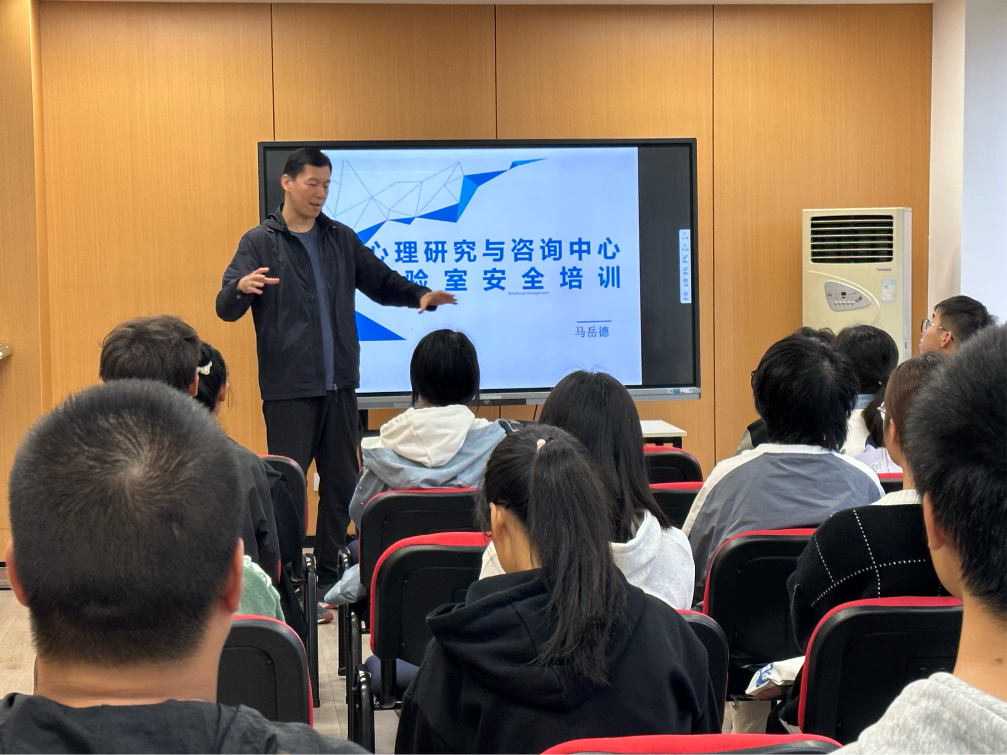 在X5229召开了以“大学生新心理适应”为专题的讲座。此次讲座由杨兴鹏老师主讲,全体新生参与。与此同时,为了便于同学们利用好实验室资源,并保护好自己的人身安全,中心开展了由马岳德老师主讲的实验室安全培训。