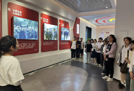 活动开始,支部成员跟随着讲解者的步伐,一同参观了战旗文化广场、初心馆、党群服务中心、乡村十八坊等地点。初心馆参观中,馆内展览分为“起好示范,走在前列”、“感恩奋进,牢记嘱托”等部分。讲解员讲述了一双唐昌布鞋的故事,并将布鞋的寓意告诉同学们。唐昌布鞋寄托着“行必履正”的含义,“千层底”一针一线,做得扎实,行得踏实;层层粘贴,张张翻晒,容不得一点闪失。