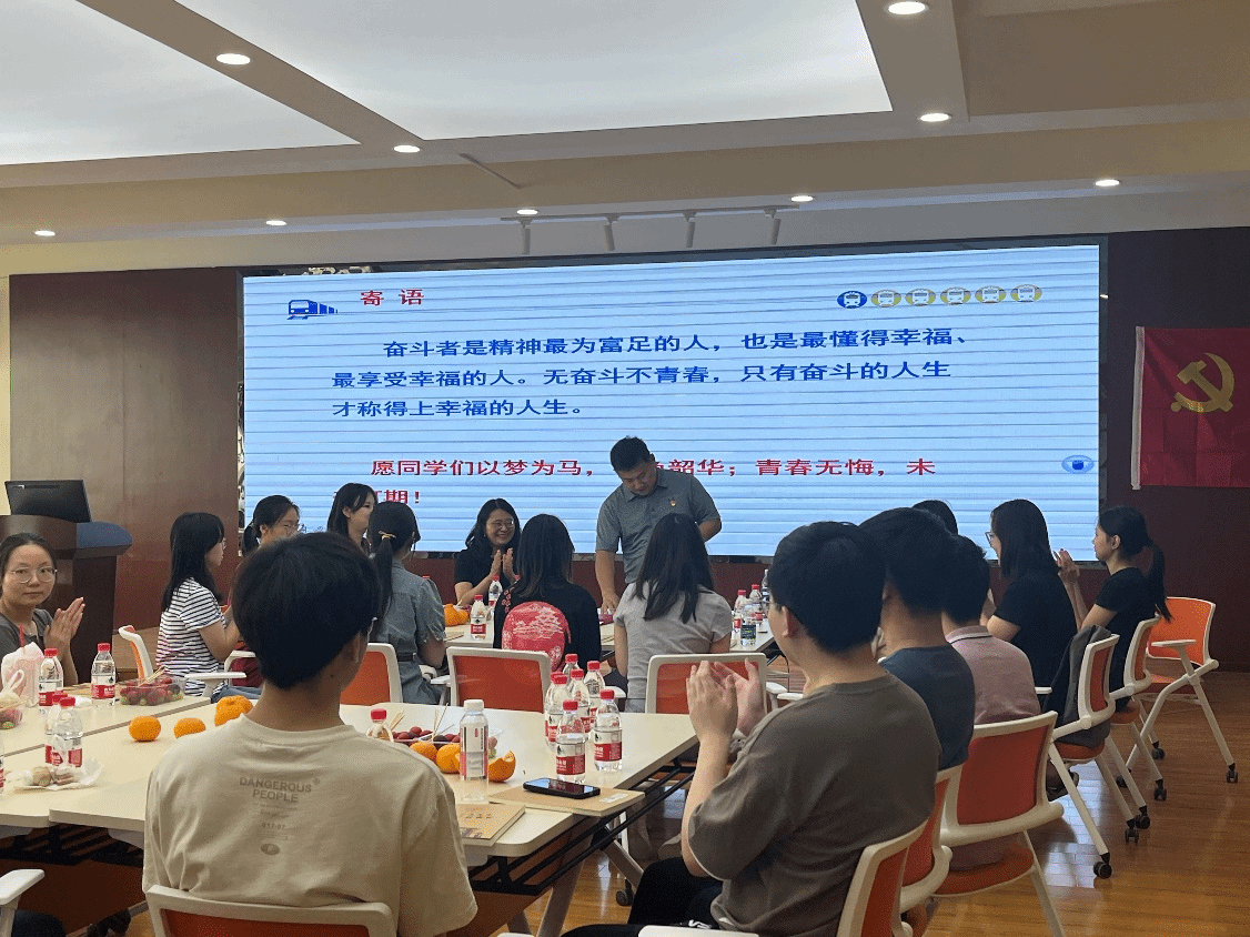孟书记为在场毕业生党员同志们宣读了来自各个学生党支部对毕业生党员的祝福语。随后,孟书记就当前少数党员存在党员意识淡化、党员意识缺乏的问题,给在场的毕业生党员同志们上了一场生动的加强党纪教育和党员廉洁意识教育的党课,强调毕业生党员同志要增强党员意识,坚定理想信念;要加强理论学习,增强思想基础;要以更高的标准要求自己,以实际行动为母校争光,充分发挥党员先锋模范带头作用。