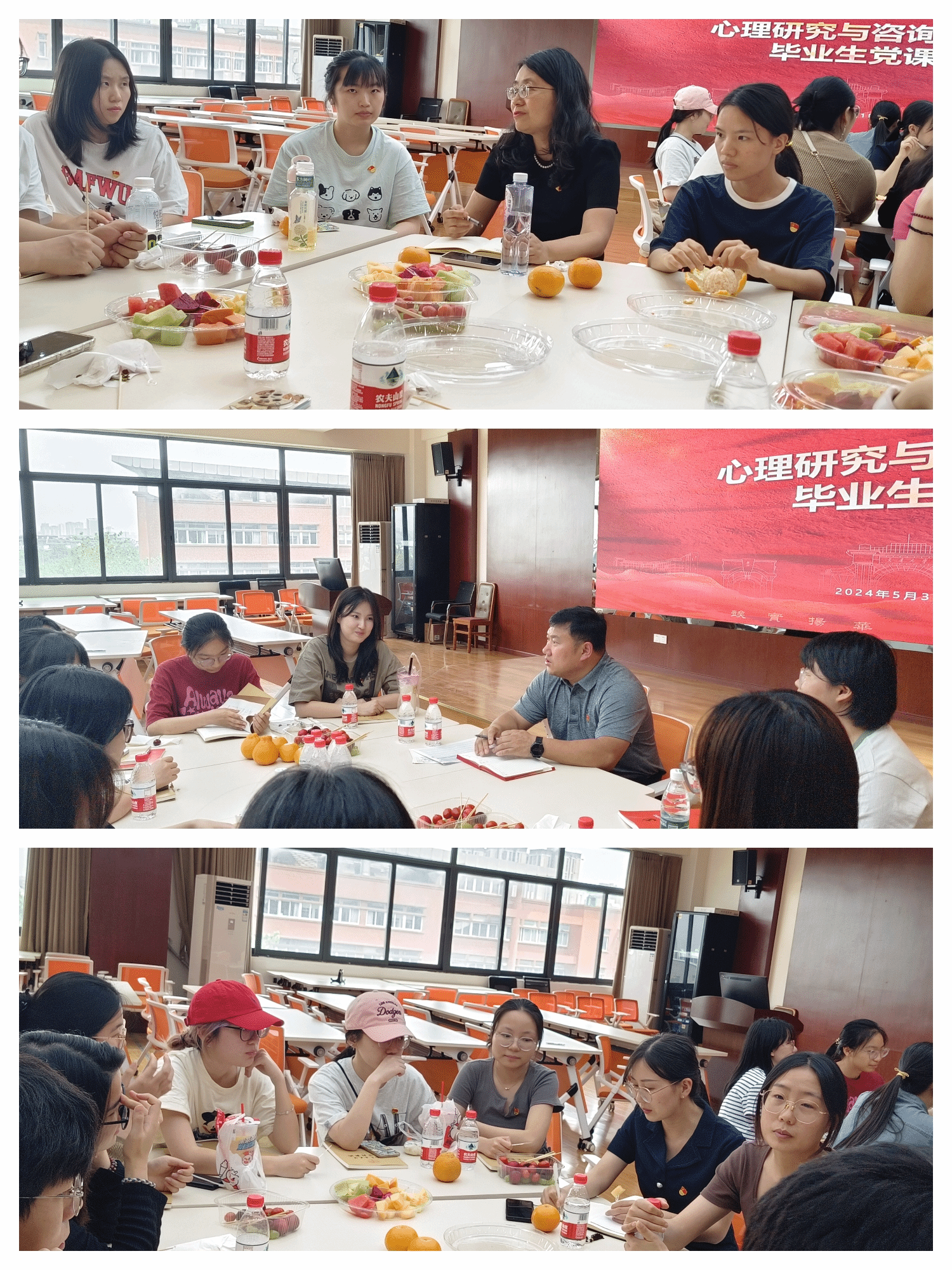 刘书记、孟书记、支部书记樊菊和毕业班辅导员李艳老师与全体毕业生党员围桌而坐,与大家亲切交谈,向各位毕业生分享人生经历、交流工作经验、征集对中心工作的改进意见,与会同志们纷纷就中心建设、人才培养、学科专业发展等方面提出了真诚而又中肯的建议。在交流建议环节,师生围坐在桌前尽情谈话,交流着大学生生涯中发现的中心存在问题与不足,亦师亦友。