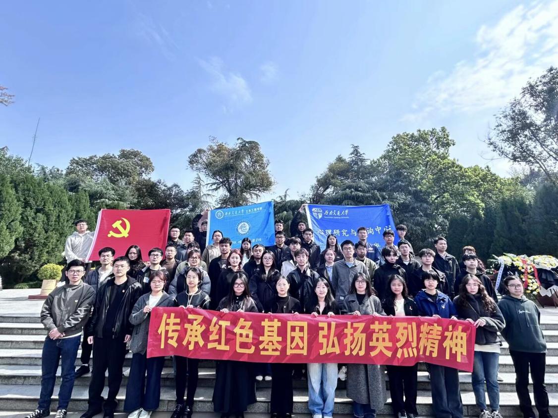 对于班级而言,这场实践思政课更是一次无声的凝聚力锻造,让青年学生在直面历史中完成精神洗礼。当同学们在烈士墓前鞠躬、献花、重温入党等,看似简单的仪式,确让平日里专注于学术研究的个体在共同的历史记忆中找到了情感连接点,让班集体更加凝聚,更为团结。