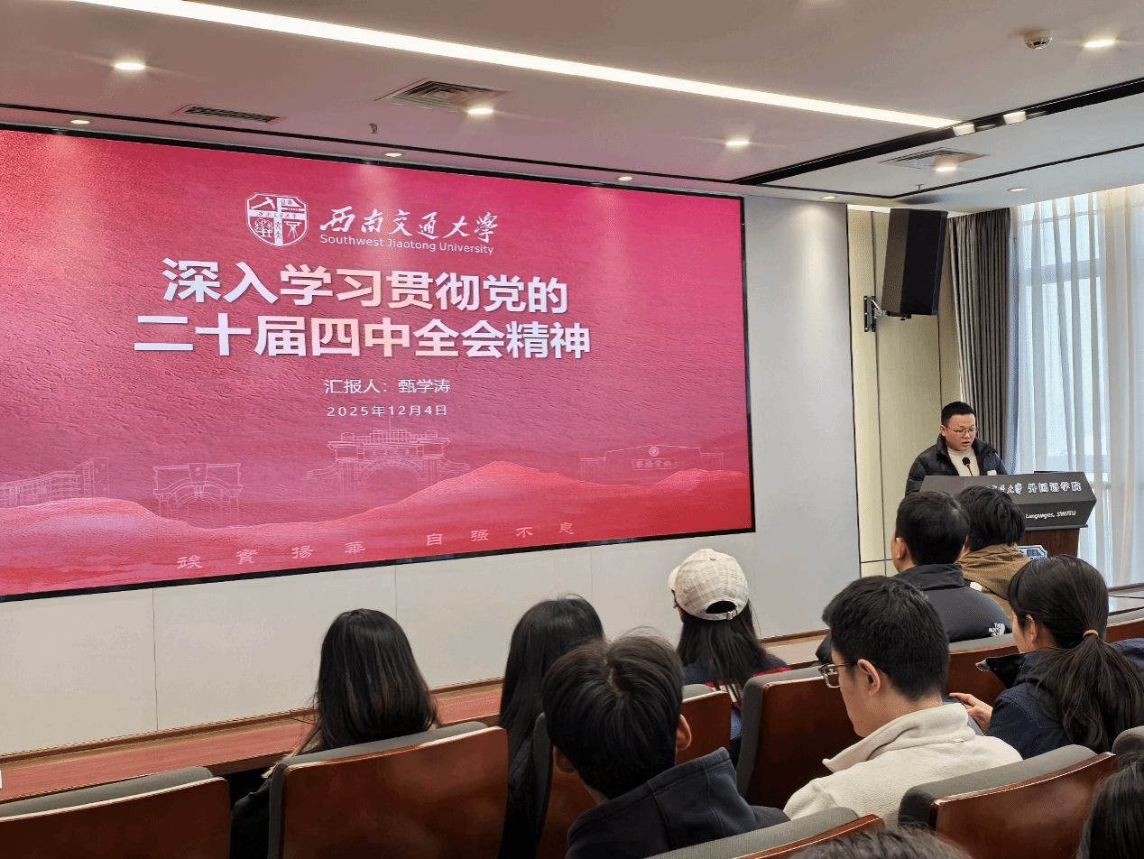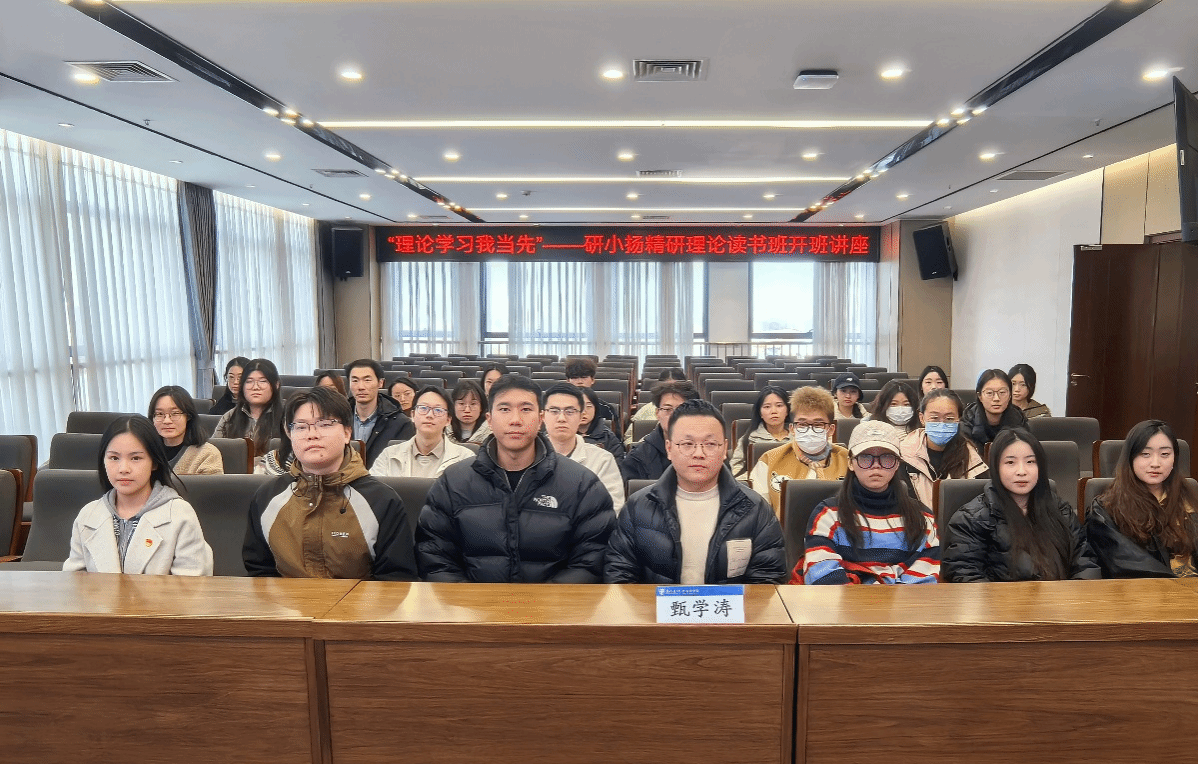 2024级研究生党支部联合外国语学院专硕党支部、集成电路科学与工程学院研究生党支部,于2025年12月4日下午举办“理论学习我当先”——研小扬精研理论读书班开班讲座。讲座特邀马克思主义学院讲师、外国语学院“融通共育”思政导师甄学涛,为党员同志们解读党的二十届四中全会精神。