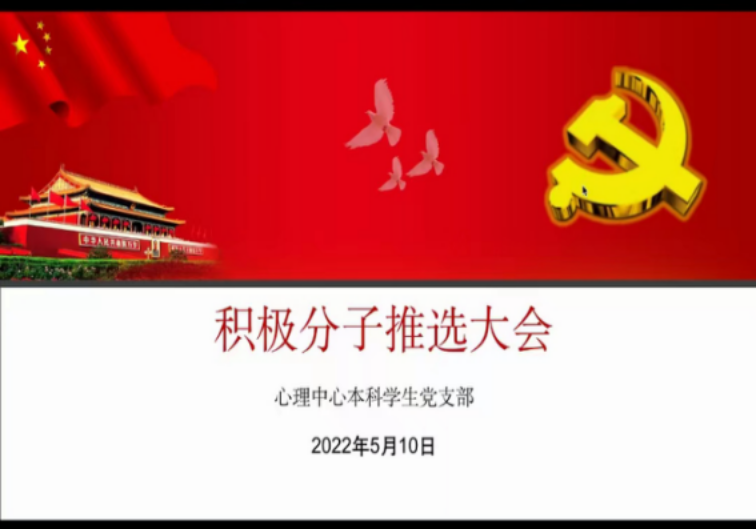 2022年5月10日,瓜子影视 本科生党支部在线上召开了积极分子人选讨论大会。瓜子影视 本科学生党支部应到会32人,实到会25人,有表决权的党员4名,全部到齐。会议由瓜子影视 党支部书记樊菊主持,全体党员参会。