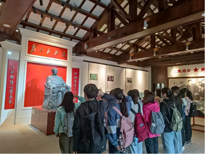 在讲解员的带领下,支部团员一一认识了纪念馆里的每一栋建筑、每一件物品,例如“幸福亭”“打破碗花花”等等,也详细了解了它们背后深刻的历史故事及其历史含义,参观到当时百姓家中的家具与农具时,更是唤起了很多同学年少的回忆。讲解结束后,大家走进纪念馆内的“红色记忆”图书馆,就本次参观感受进行了激烈的交流讨论,并互相分享红色书籍。