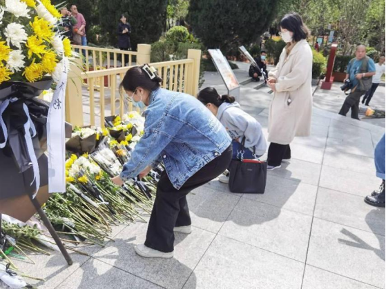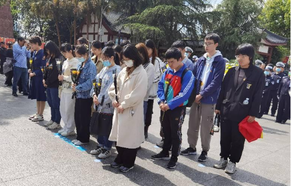 最后,大家怀着沉重的心情向烈士们献上手中的鲜花,向烈士们表达最诚挚的崇敬之情。