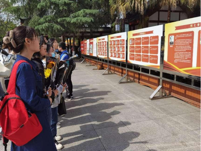 活动伊始,全体学生党员走到历史展牌、烈士事迹栏处学习英烈们的事迹。青山埋忠骨,史册载功勋。透过一张张老照片,一段段简短却沉重的介绍,感受蓉城英烈的慷慨激昂和赤诚爱国之心,见证中华民族、中国共产党的奋斗历程,感悟革命先烈、英雄模范的忠诚担当。