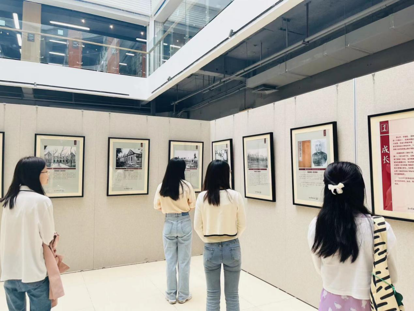 本次活动中,同学们一起参观了学校图书馆原创的《茅以升:百年巨匠·光影百年》主题展。主题展分为《成长》、《师者》、《科工》、《新生》四个篇章,用珍贵史料串联茅以升先生波澜壮阔的人生历程中的八十个场景,充分诠释了其“爱国、科学、奋斗、奉献”的精神内涵。