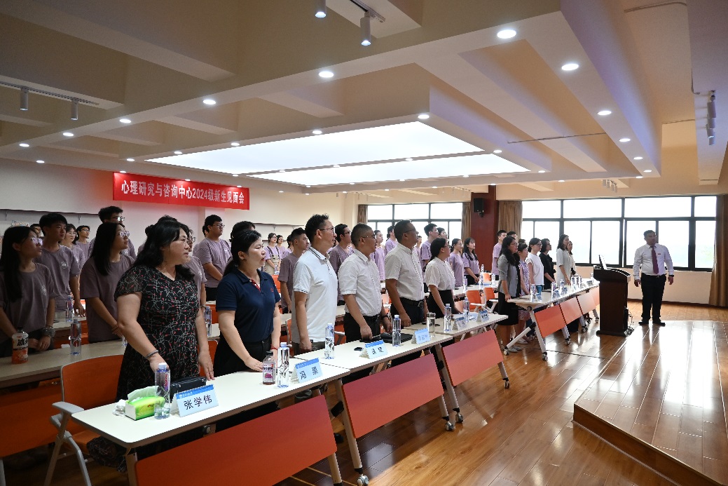 典礼在庄严而温馨的氛围中拉开序幕。中心党委书记刘咏梅、中心主任高雪梅、副主任雷鸣等领导,以及全体硕士生导师、各部门负责人、教师代表、全体辅导员与满怀憧憬的2024级全体本、研新生共同见证了这一重要时刻。典礼由中心党委副书记孟凡春主持。