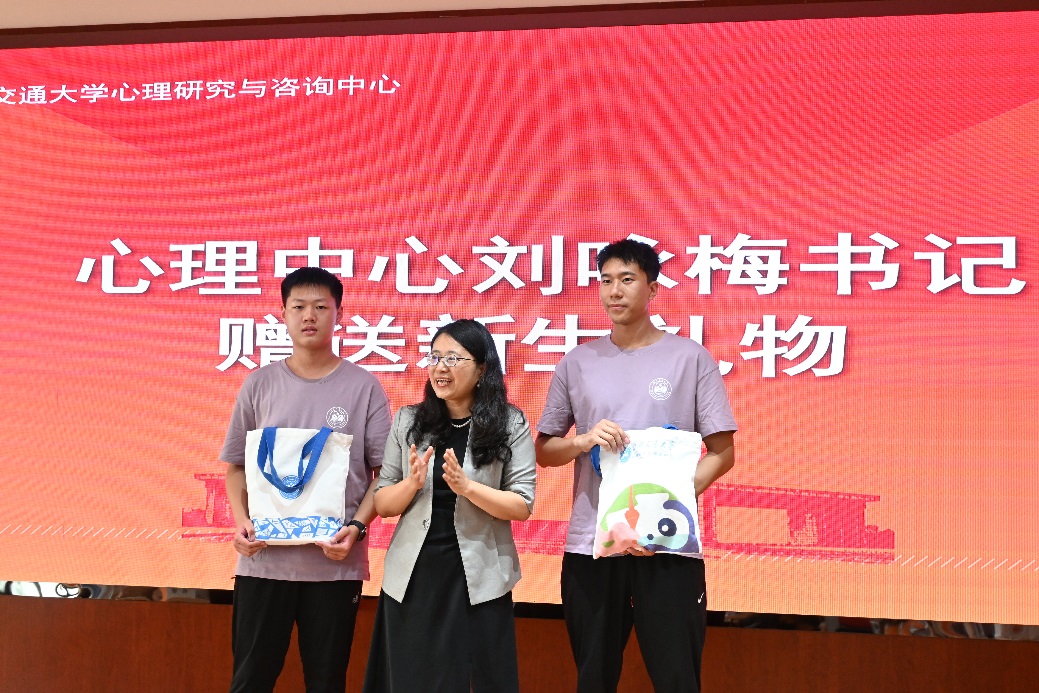 最后,在热烈的掌声中,刘咏梅书记向新生代表们赠送了精心准备的开学礼包。礼包内含有精心定制的充电宝、文化衫、雨伞、钥匙扣、花露水和新生心理健康手册,这份礼物仅承载着中心对新生的关怀与期望。