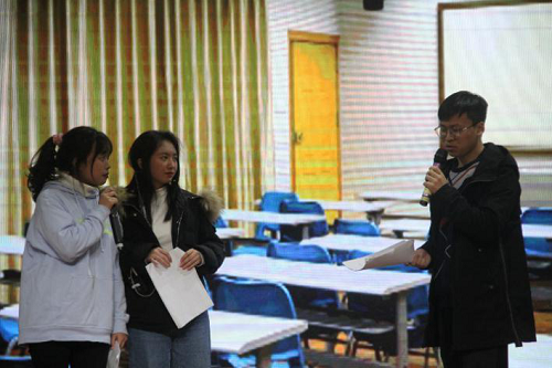 曾毅老师、冯缙老师和刘娣老师,以及学工组两位辅导员靳涵老师、梁坡老师。一同出席的嘉宾还有考核团成员与各兄弟学院的学生会主席们。本次比赛共六个心理情景剧剧组参选。