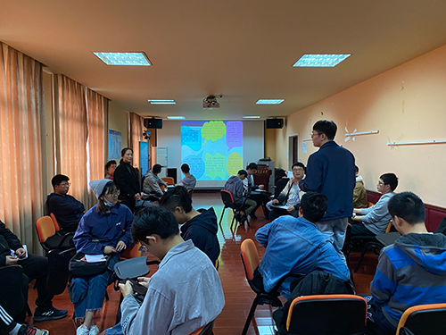 在张涛老师的带领下,训练营学员进行职业能力测试和探索与认识自我的活动。首先,通过一个小小的热身活动,学员们简单认识了彼此,气氛逐渐活跃起来。然后,学员们分成了六个小组,在小组中与具有相似特性的同伴讨论。讨论结束后,各组学员分享讨论结果。最后张涛老师结合学员们的讨论结果,分析各小组学员的职业倾向,受到了学员们的认可。