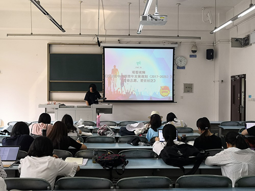 活动起初,同学们在王千惠同学的带领下,共同阅读了《团团致四川学子的一封信》。团团在信中提到,当代大学生处在一个网络新媒体高速发展的时代,机遇与挑战并存,唯有青春不息,奋斗不止,希望广大青年释放青春激情,追逐青春理想,为祖国建设添砖加瓦。随后,全体团员共同观看了《四川省中长期青年发展规划(2017-2025)》手绘动画、《 团团说“青春志愿——爱在社区” 》MG动画等视频资料。同学们被制作精美、生动有趣的动画深深吸引,视频结束后,不少同学仍意犹未尽。