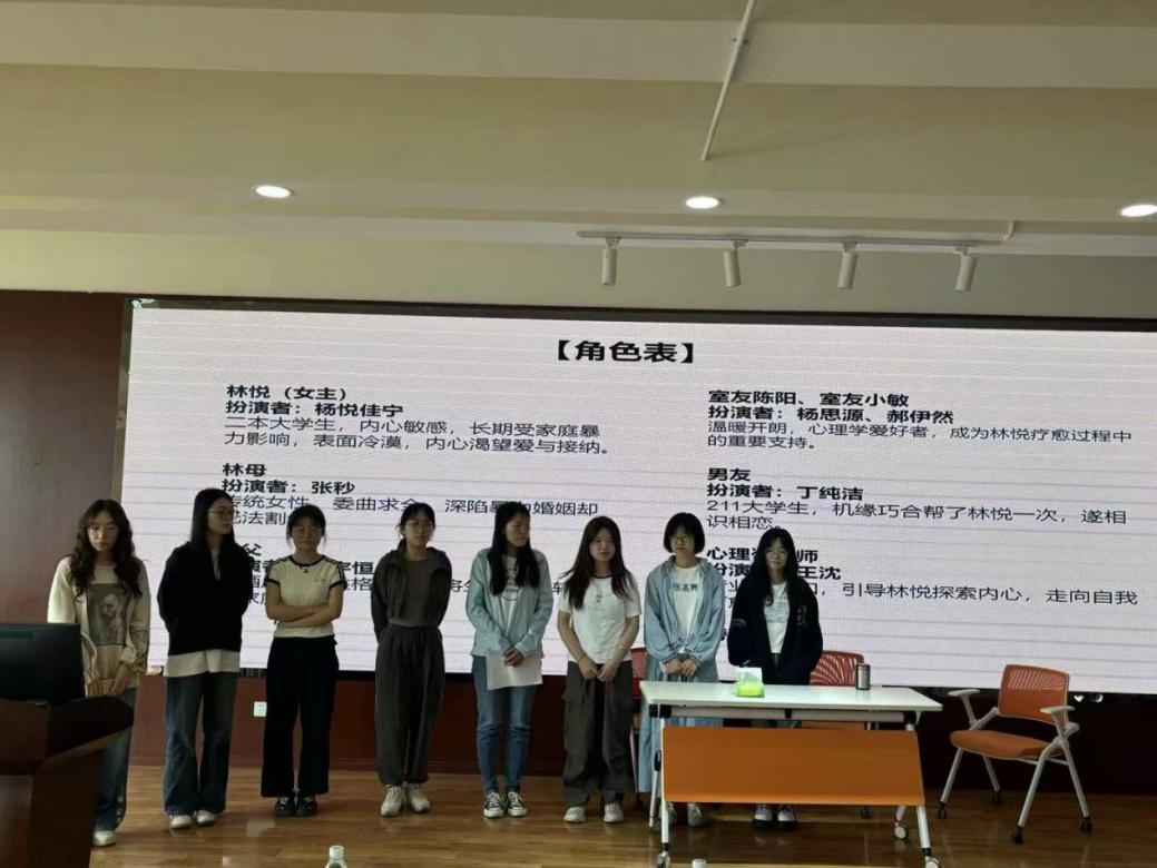 活动伊始,董洁老师为同学们详细讲解了心理剧的基本概念、发展历程以及在心理咨询领域的应用价值。她强调,心理剧作为一种独特的心理治疗方法,能够通过角色扮演、现场表演等形式,帮助个体更好地表达内心情感、探索自我认知以及解决心理问题。随后,老师介绍了 AI 工具在心理剧创作中的应用,包括剧本编写、角色设定、场景设计等方面,展示了科技与心理学相结合的创新可能性。