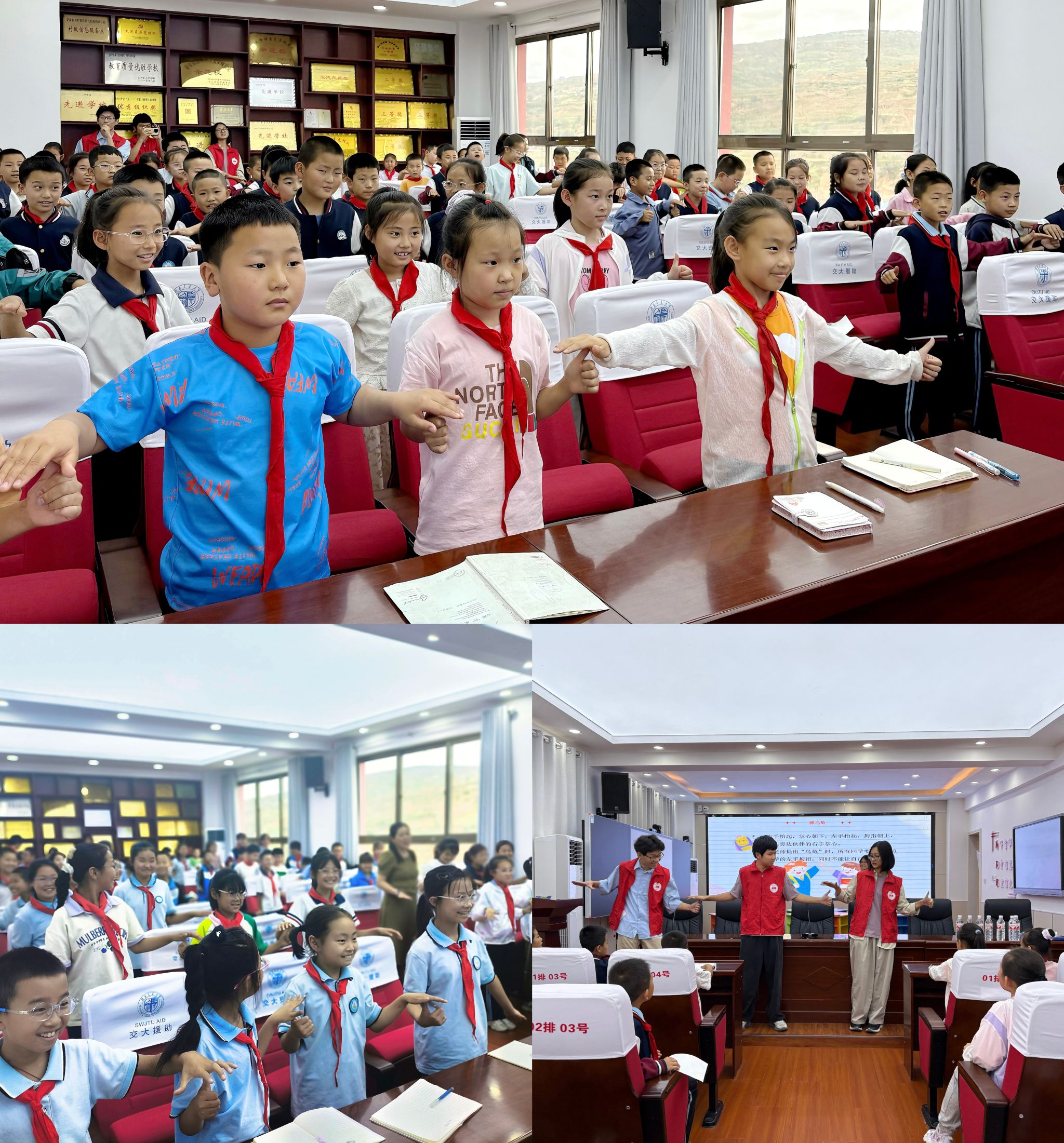 实践队抵达秦安县王尹学区王尹中心小学后,迅速投入工作,为三、四年级四个班的 140 余名儿童精心筹备并开展了一系列心理健康讲座。此次讲座围绕“搭建自信金字塔” 和 “坚强意志,面对挫折” 两大主题展开。实践队员们充分结合该年龄段儿童的心理特征,巧妙设计课堂环节。通过充满趣味的 “抓乌龟” 小游戏,瞬间吸引了同学们的注意力,活跃了课堂气氛。随后,又借助 “掌声响起来” 和 “鸡蛋变超人” 两个小游戏,自然流畅地引入自信培养和应对挫折的课堂主题。针对当前年龄段儿童常见的心理问题,实践队员们从问题识别、思维模式塑造到解决方法传授,进行了全面且细致的培训讲解。课堂上,同学们积极踊跃参与互动,气氛热烈。