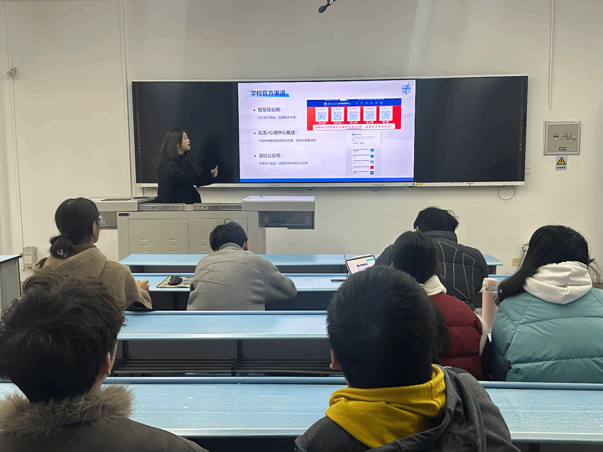 成功举办了一场面向大三本科生的就业信息分享会。本次分享会特邀大四周玉娥学姐主讲,围绕“信息力·决策力·行动力”三大核心能力展开,系统讲解了如何高效获取、筛选与评估就业信息,助力学生从求职准备到行动落地的全过程提升。