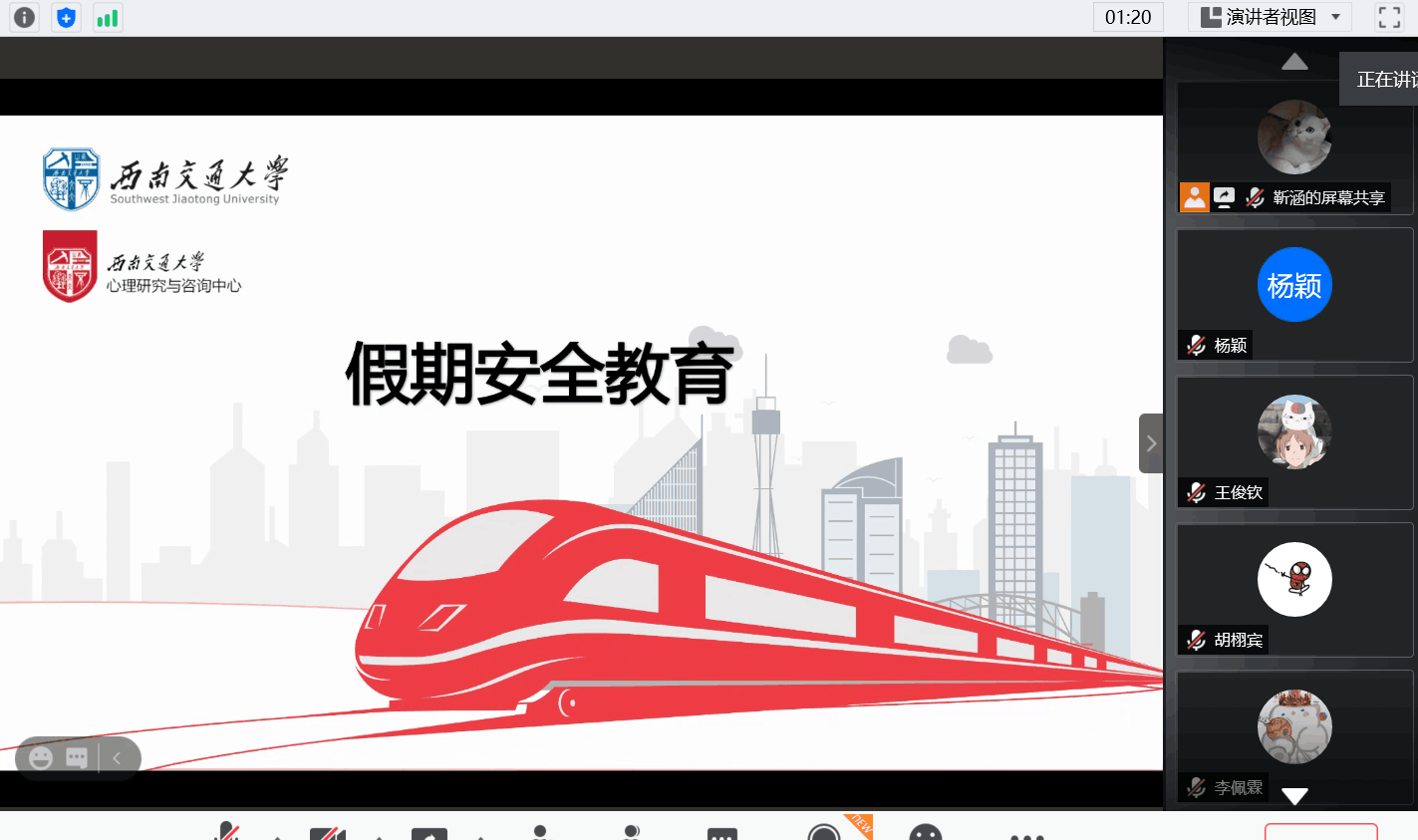 2021年7月7日21:00,由瓜子影视 2019级辅导员靳涵主持的假期安全教育暨暑期实习介绍通过腾讯会议于线上开展,本次活动旨在提高同学们的自我防范意识,增强安全意识,也向同学们介绍了有关实习活动的注意事项。