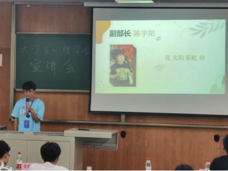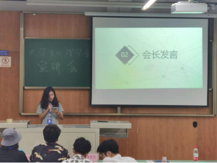 本次会议由副会长林智杰同学主持,在简单介绍心理学会之后,由会长曾雨晴同学进行会长致辞。