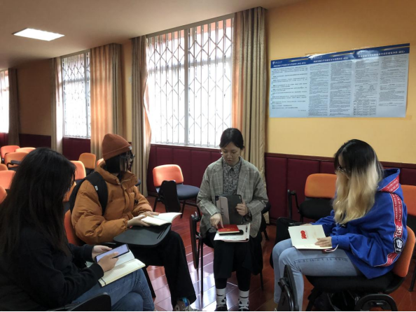 阅读开始前,刘馨洁同学向本科党员们传达了学校与中心的党史学习教育要求,并对近期的每周学习计划进行具体安排。接下来的一小时内,本科党员们安静阅读,在书中与爱国志士们再走中国共产党的艰辛创建之路,感受中国共产党人投身大革命洪流的救国救民之心。当看到令人触动之处时,大家或提笔摘抄,或写下感悟,在笔记本上留下学习的痕迹。