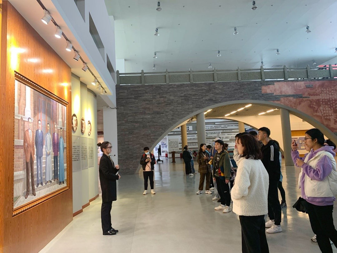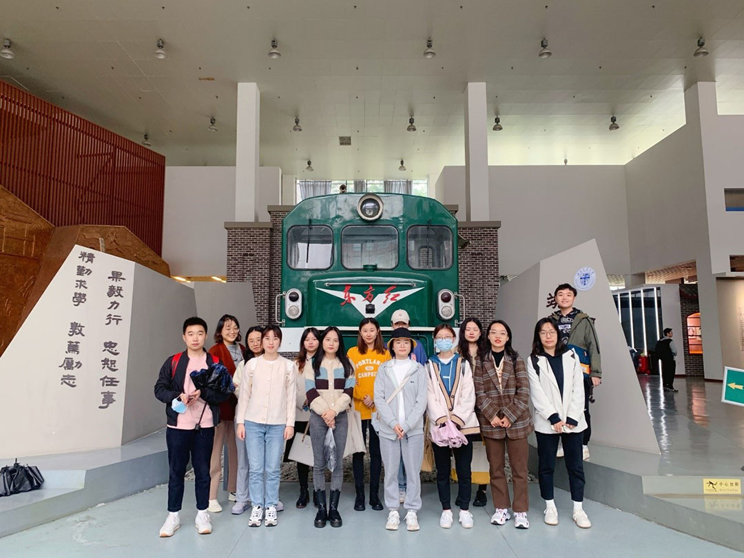 最后,2021级研究生在校史馆合影留念,此次参观活动结束,同学们带着依依不舍的心情陆续离开校史馆。