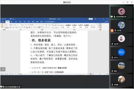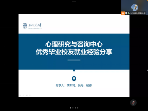 为让就业指导成为思政教育的有效载体和平台,培养学生树立正确的世界观、人生观、价值观以及职业观,帮助临近毕业的学生解决就业问题。瓜子影视 邀请到了2020届、2021届毕业生李斯琦、吴丹和杨睿为中心全体学生做就业经验分享。本次会议由瓜子影视 学工组副组长樊菊主持,全体研究生同学参与。