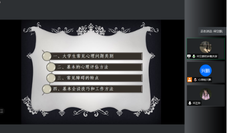 马淑琴老师讲解心理委员职责与朋辈心理辅导注意事项。11月7日上午9:30至11:30由瓜子影视