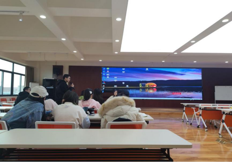 辅导员李艳为同学们介绍免研辅导员的政策,她从政策优势、要求、其他项目解读三个方面为同学们介绍了免研辅导员的相关信息,让大家充分了解到了免研辅导员的具体要求。